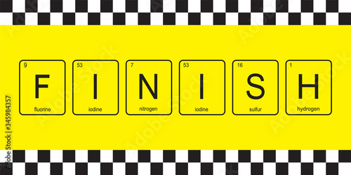 The chemical elements of the periodic table, funny phrase - Finish on yellow background.