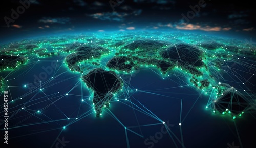 The city from far away was bright and full of high and low buildings. Reflections from rivers, seas, islands, world maps,