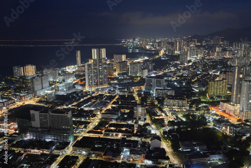 The Cityscape of Georgetown on Penang in Malaysia Asia in the Night Time