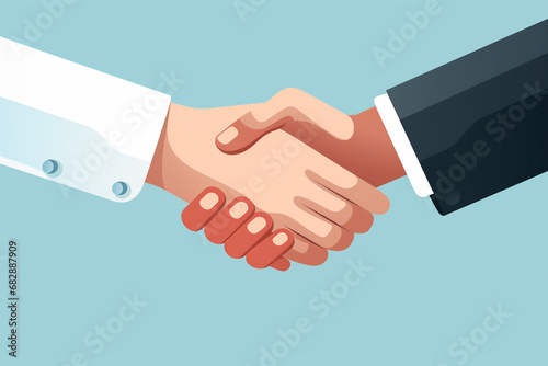 The close up vibrant and colorful minimal flat illustration of businessmen shaking hands in meetings or agreements isolated on a simple background. Generative AI.