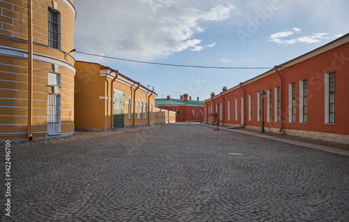 The Coin Yard of the Peter and Paul Fortress at sunset