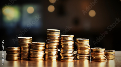 The coins are stacked in columns growing exponentially from left to right.