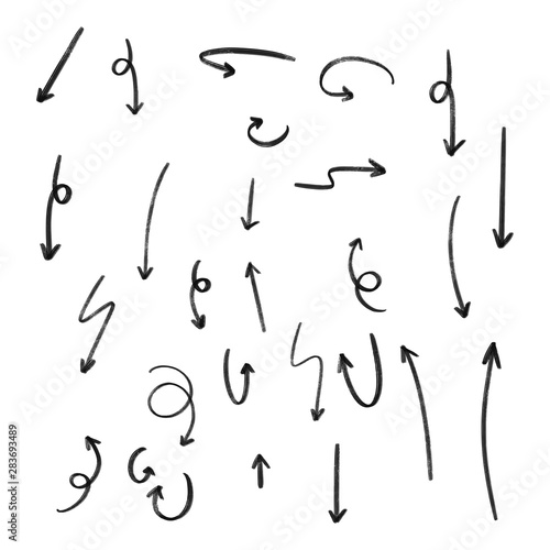 The collection of hand drawn arrows. Arrows set on the white background. Vector EPS 10.
