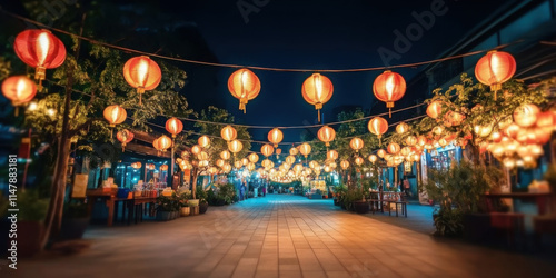 The colorful lanterns and digital displays illuminate a vibrant Chinese New Year celebration in futuristic Chinatown