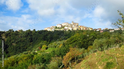 the colorful medieval village of Ponzano Superiore along the Via Francigena