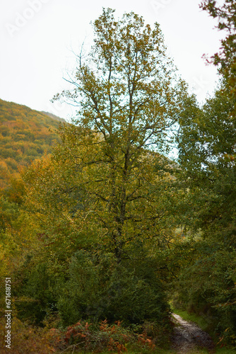 The colors of autumn in the beech forest of the Iranzu River Canyon in the Sierra de Urbasa. Navarre. Spain
