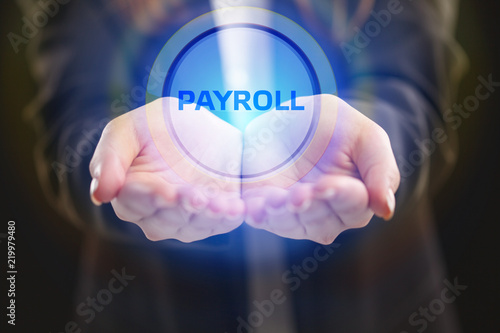 The concept of business, technology, the Internet and the network. A young entrepreneur working on a virtual screen of the future and sees the inscription: Payroll