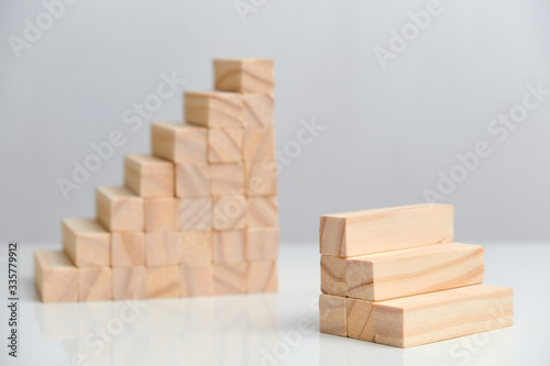 The concept of comparing small and medium-sized businesses. Wooden blocks on a white background background.