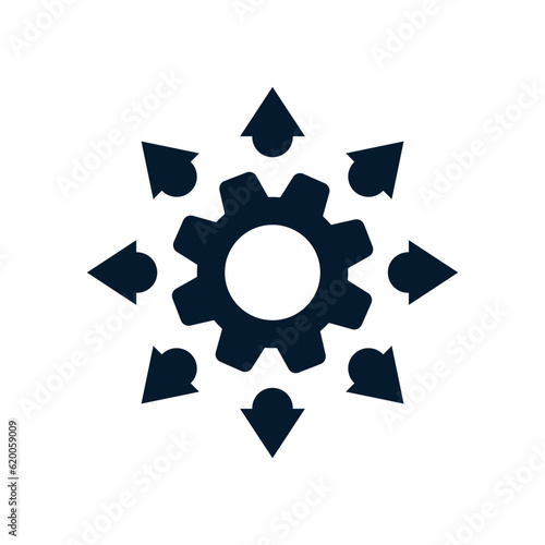 The concept of project management, distribution of tasks. Vector linear icon isolated on white background.