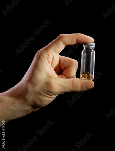The container with tablets in a hand