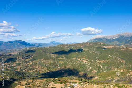 The countryside around Orgosolo in Europe, Italy, Sardinia, Orgosolo, in summer, on a sunny day.