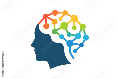 The Creative Human Brain Technology Logo is represented through vector icon symbol illustrations, featuring colorful connecting data for and a human face, embodying a creative mind full of