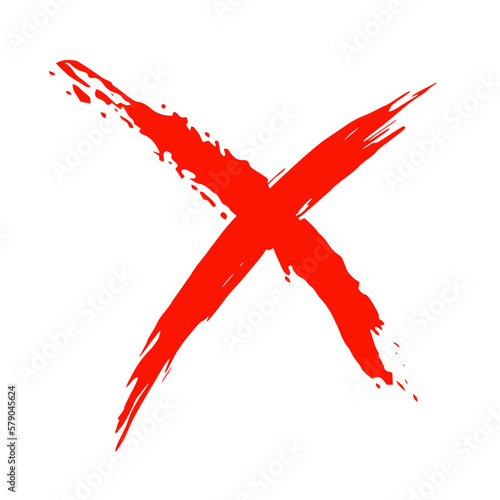 The cross on a white background is drawn by hand with a brush. Prohibition, denial, error. Vector