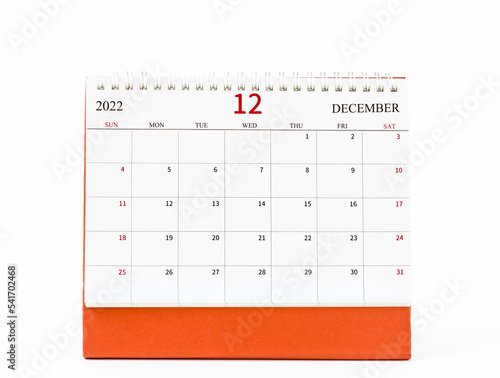 The December 2022 Monthly desk calendar for the organizer to plan 2022 year on white background.