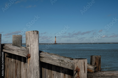 THe decommissined Morris Island Lighthouse at the entrance to Charleston Harbor in South Carolina