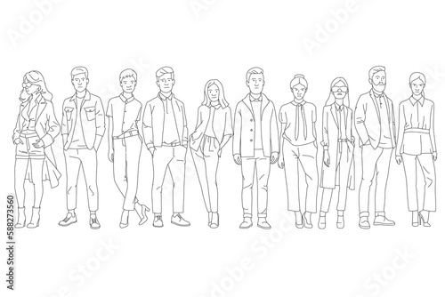 The diverse group of people, entrepreneurs, or office workers isolated on white background. Multinational company. Flat cartoon vector illustration.