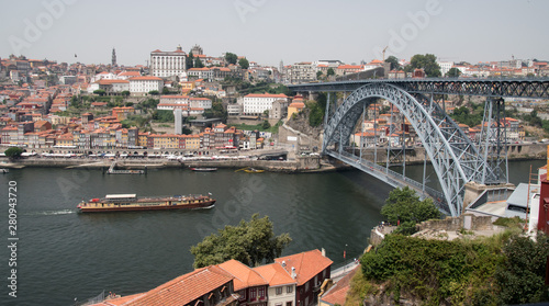 The Dom Luis I Bridge, a double deck metal arch bridge that crosses the Douro River in Porto, Portugal.