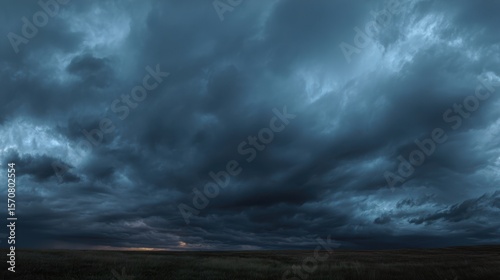 The Dramatic Cloudscape Over a Tranquil Field at Dusk