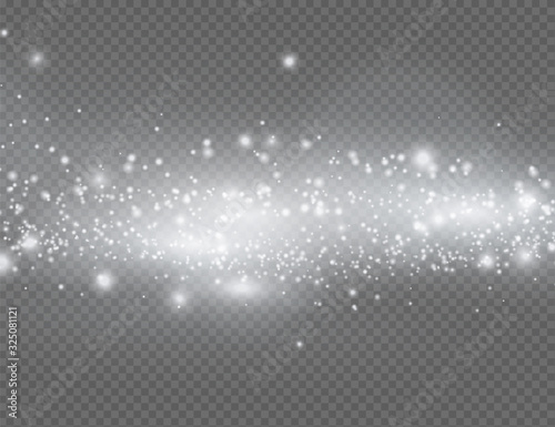 The dust sparks and golden stars shine with special light. Vector sparkles on a transparent background. Christmas light effect. Sparkling magical dust particles.