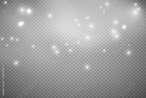 The dust sparks and golden stars shine with special light. Vector sparkles on a transparent background. Christmas light effect. Sparkling magical dust particles