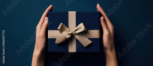 The Elegant Gift Box with a Bow Held by Hands