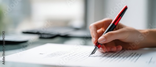 The elegant hand writing a formal document with a fountain pen