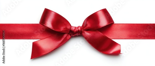 The elegant red satin bow poised beautifully on a white background