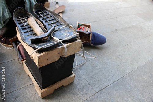 The equipment and tools used for manual shoe sole sticthing