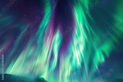 The ethereal dance of the aurora borealis, with whispers of green and violet traveling through an arctic sky