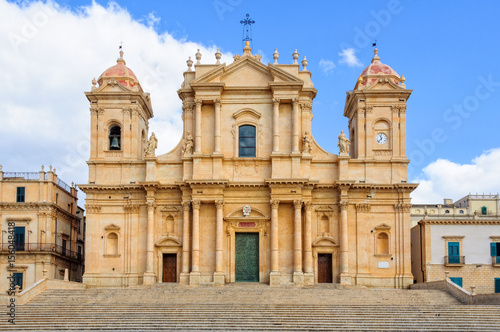 The facade of the beautiful Sicilian baroque Cathedral dedicated to Saint Nicholas - Noto, Sicily, Italy