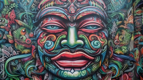 the face of a mask Graffiti Art Mural