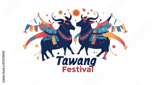 The festival in Tawang monastery,festival is celebrated as uniquely as the beautiful Tawang valley.vector