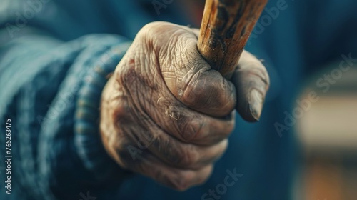 The fingers of a baseball player curled around the bat handle ready to swing.