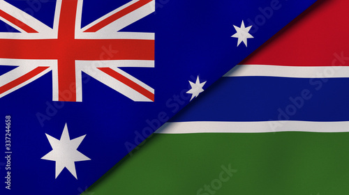 The flags of Australia and Gambia. News, reportage, business background. 3d illustration