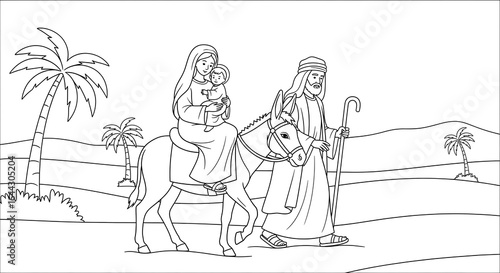 The Flight to Egypt of the Holy Family Coloring Page Outline