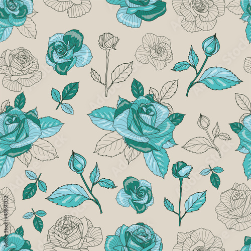 The floral textile pattern design. Great for retro fabric, wallpaper, scrapbooking projects. Bright background.