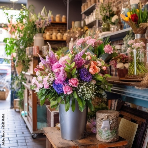 The florist shop sells a beautiful spring flower bouquet. (Generative AI)
