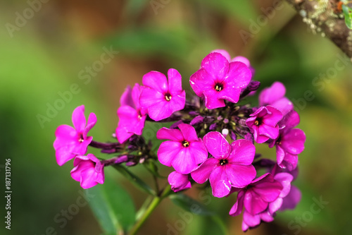 The flower of a red phlox growing in a summer garden.