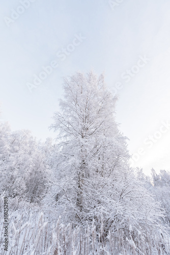 The forest has covered with heavy snow in winter season at Lapland, Finland.