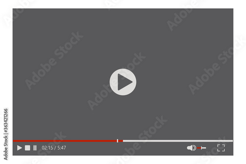 The frame of the playing video player. Playback control buttons. Vector user interface layout. Stock Photo.