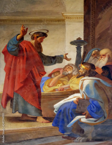 The fresco with the image of the life of St. Paul: Paul Agrees to Take the Nazirites to the Temple, basilica of Saint Paul Outside the Walls, Rome, Italy
