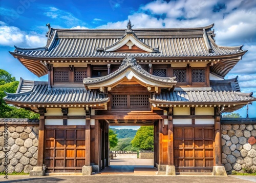 The front gate of Kanazawa Castle showcases intricate architectural details, harmoniously blending history, artistry, and traditional Japanese craftsmanship within Japan's captivating historic landsca