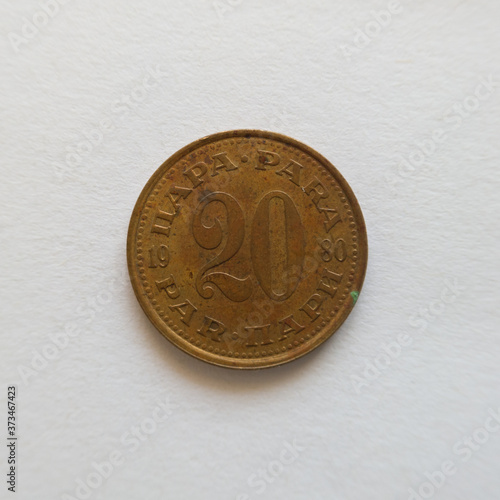 The front of the twenty para coin, the dinar was divided into 100 para, currency of the Socialist Federal Republic of Yugoslavia, issued in 1980.