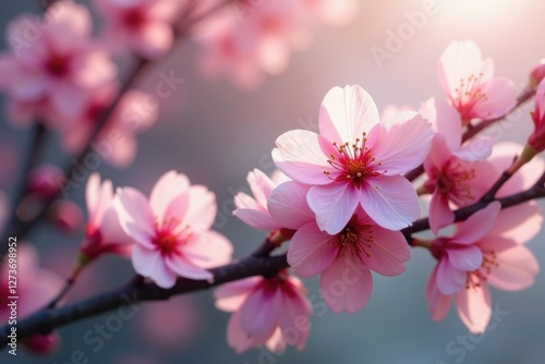 The gentle rustle of petals in the wind creates a soothing melody amidst blooming cherry blossoms, blossoms, relaxation, serenity