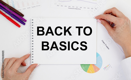 The girl holds in front of her block with the tacts Back to Basics, next to the karnadashi and the diagram.