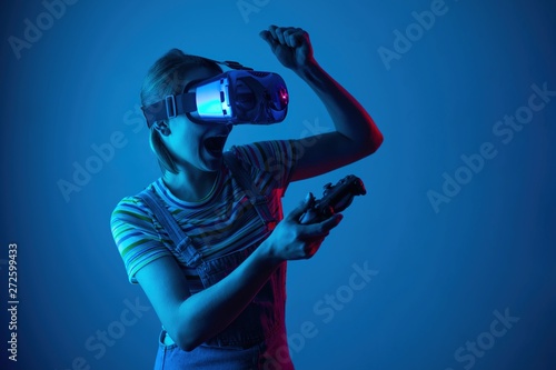 The girl plays vr.geyming.kreativny light.modern technologies eSports
