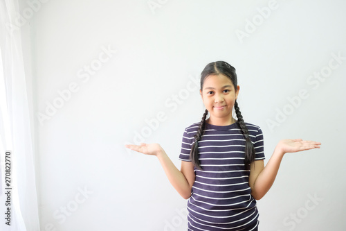 The girl standing spreading hands