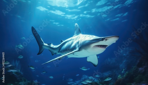 The great White Shark in the ocean, portrait of White shark hunting prey in the underwater