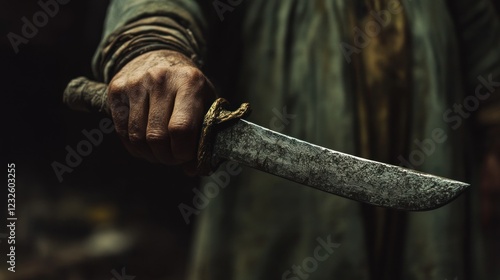 The Gripping Power: A Weathered Hand Clasps a Ancient Blade