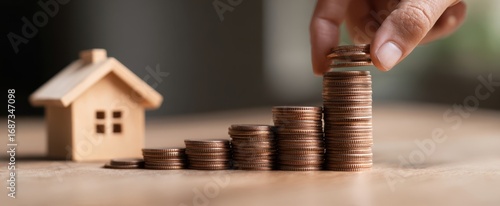 The growing stack of coins symbolizes financial investment in homeownership.